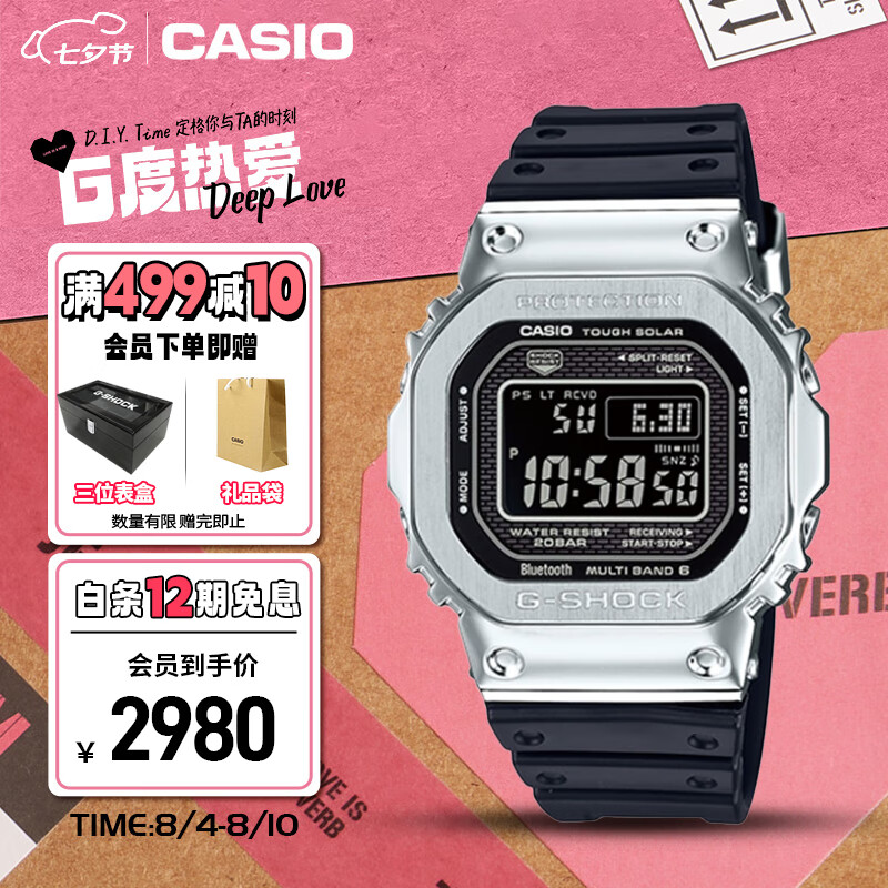 卡西欧(CASIO)手表男士经典小方块G-SHOCK运动电子日韩表七夕礼物GMW-B5000-1价格:2990.00元!