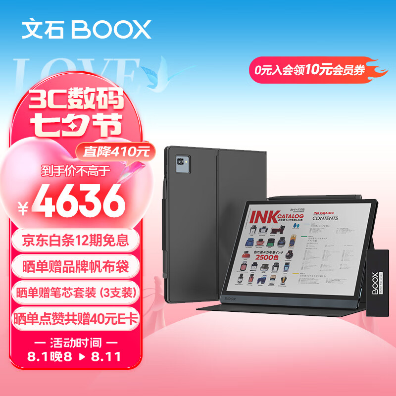 BOOX文石 Tab10C Pro 10.3英寸电子书阅读器平板 彩色墨水屏电纸书 大屏智能办公 笔芯+磁吸保护套装价格:4636.00元!