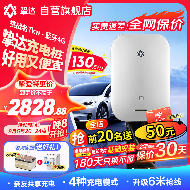 挚达充电桩7kw新能源汽车充电器挑战者适配特斯拉比亚迪su7小米汽车(送装一体)30米安装包价格:3929.00元!