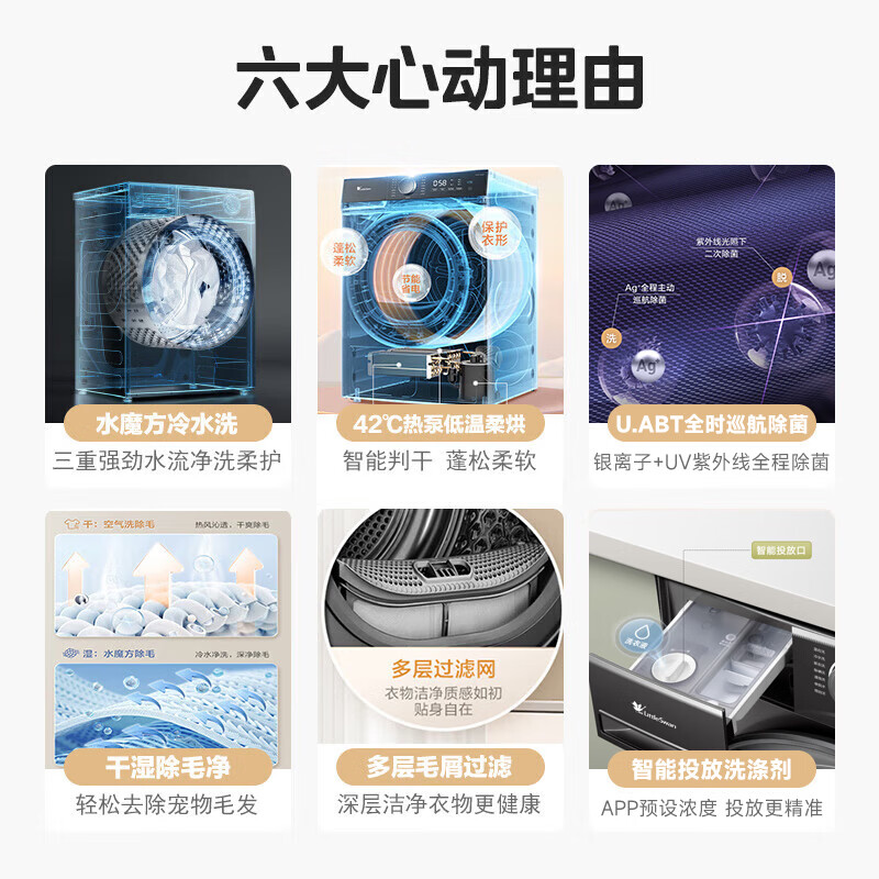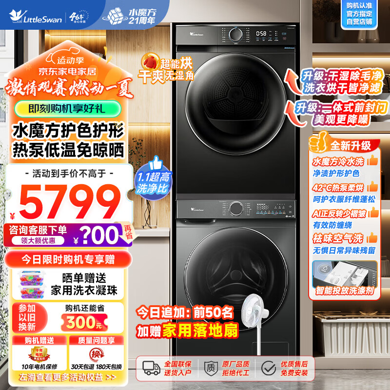 小天鹅水魔方618PLUS洗烘套装组合 10公斤滚筒洗衣机全自动+热泵式烘干机 智能投放 除菌螨 V868PLUS+02价格:5899.00元!