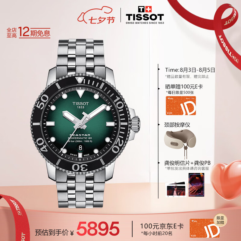 天梭(TISSOT)龚俊同款 海星系列腕表 机械男表 七夕送男友T120.407.11.091.01价格:6550.00元!