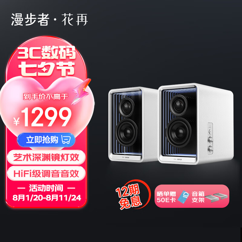 漫步者花再 Halo 2.0 深渊监听音箱 蓝牙电脑音响 桌面音响 HIFI级音质 电视音响 客厅音响 破晓白价格:1299.00元!