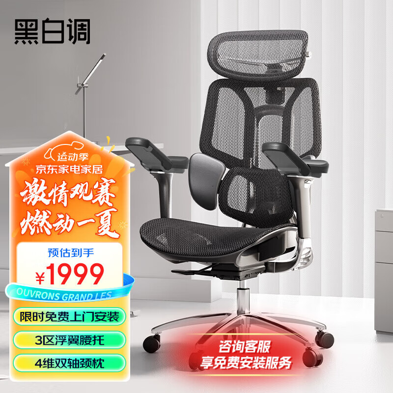 黑白调E3Pro人体工学椅 电脑椅子办公椅可躺电竞椅人工力学座椅结构大师价格:2299.00元!