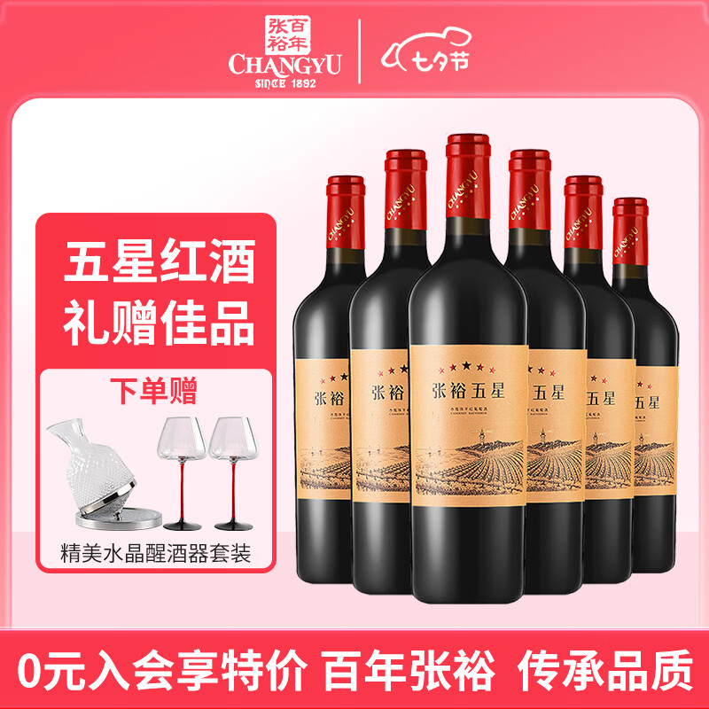 张裕(CHANGYU)五星金奖赤霞珠干红葡萄酒 750ml*6瓶整箱装 国产红酒 七夕送礼价格:1788.00元!