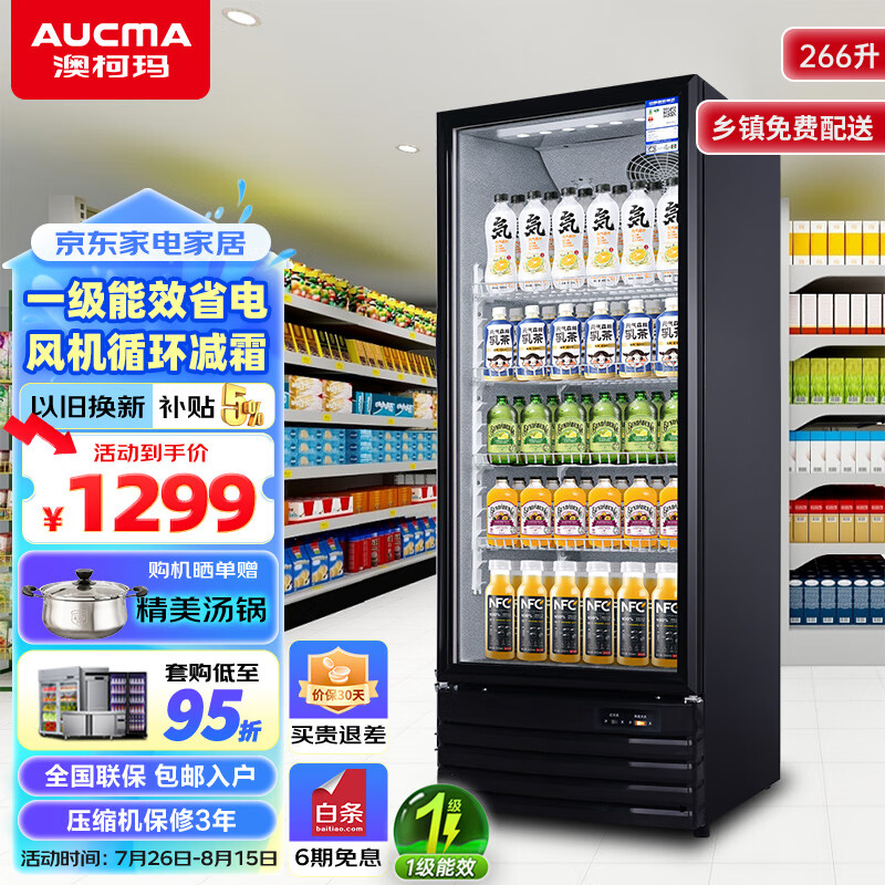 澳柯玛(AUCMA)冷藏展示柜 立式保鲜柜商用冰箱饮料冷柜啤酒柜 超市冰柜冷饮陈列柜单门大容量 风直冷减霜 266升 1级能效 SC-266NE价格:1299.00元!