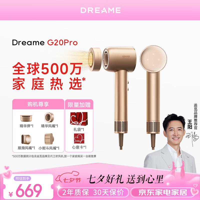 追觅韶光G20Pro高速吹风机家用 大功率负离子吹风筒 精华弹护发润发电吹风七夕情人节礼物 香槟金价格:969.00元!