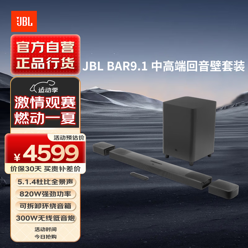 JBL BAR9.1 5.1.4杜比全景声音响 回音壁 家庭影院音箱 电视投影仪音响蓝牙音箱 HIFI套装Soundbar价格:4599.00元!