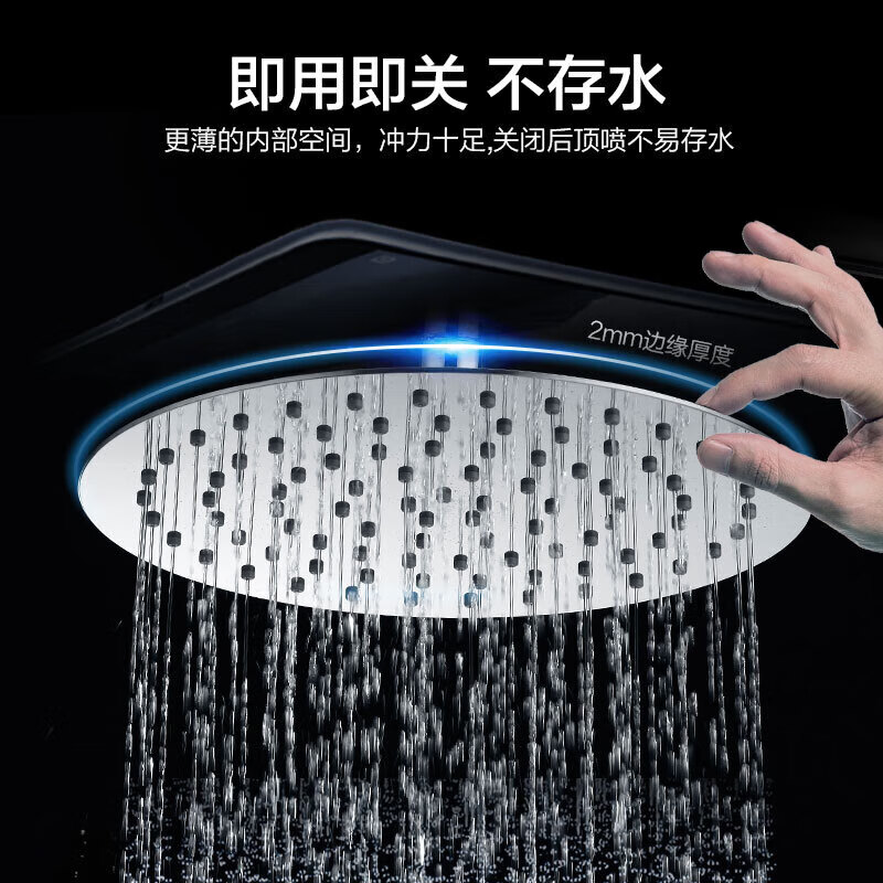 4、颜值不错,顶棚很精致,不锈钢超薄,龙头份量重,阻尼很好,有手感,下水切换可以拔上来旋转锁住,很人性化,也可以调成自动下出水。手持花洒很轻巧。