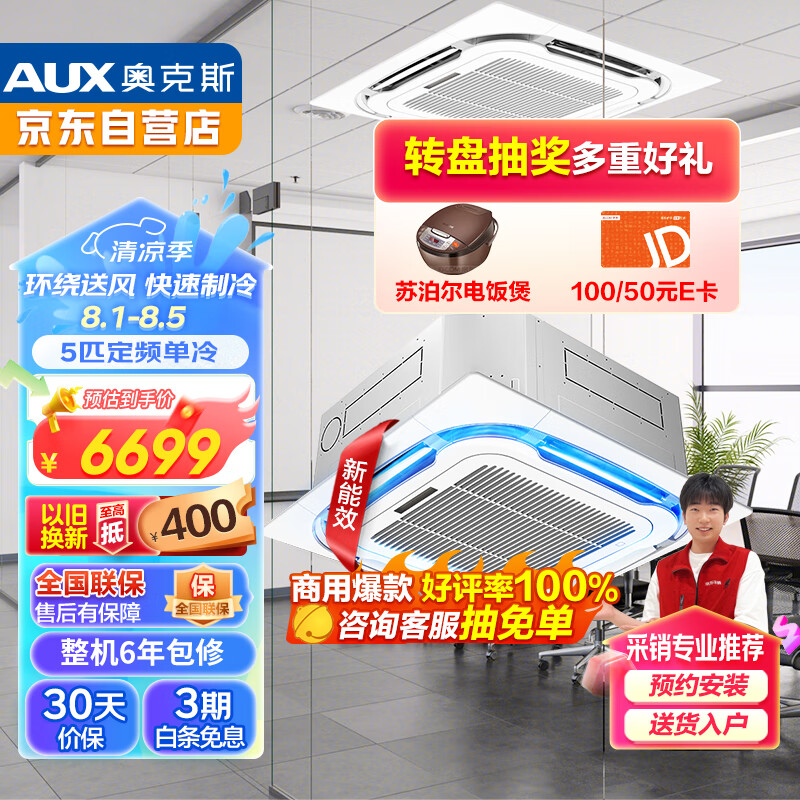 奥克斯(AUX)中央空调一拖一 5匹天花机嵌入式吸顶机单冷新能效吊顶商用天井机380V KF-120QW/R3YC3(B3)价格:7299.00元!
