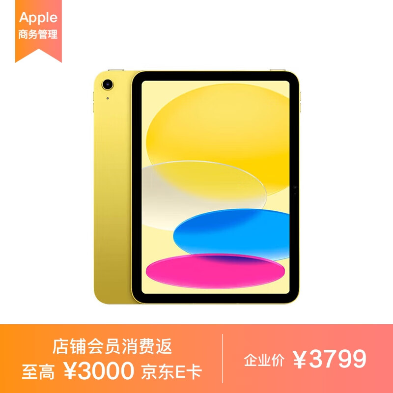 Apple iPad 10.9英寸平板电脑2022年款(256GB WLAN版/A14芯片/1200万像素/iPadOS MPQA3CH/A)黄色*企业专享价格:3999.00元!