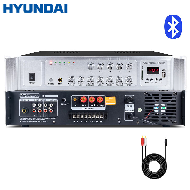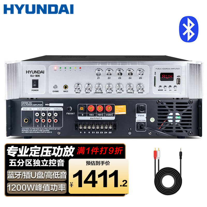 HYUNDAI 现代SU-906专业定压大功率功放机 蓝牙功放公共广播吸顶音响吊顶喇叭五分区控音峰值功率1200W价格:1568.00元!