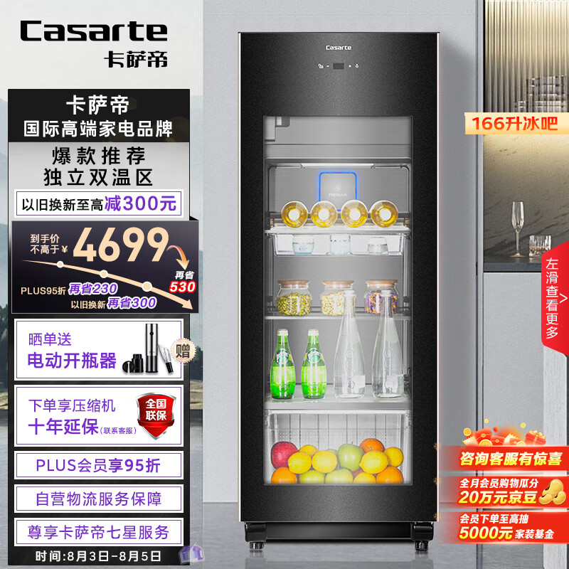卡萨帝(Casarte)166升可制冰双温家用办公室冷藏柜暖藏冰吧 茶叶饮料水果保鲜柜小型冰箱DS0166DK 以旧换新价格:4699.00元!
