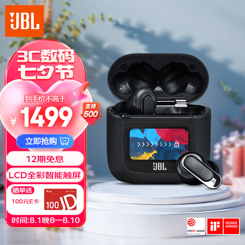 JBL TOUR PRO2真无线入耳式主动降噪蓝牙耳机 全音域出众音质 睡眠电竞游戏音乐耳机 钢琴黑价格:1899.00元!