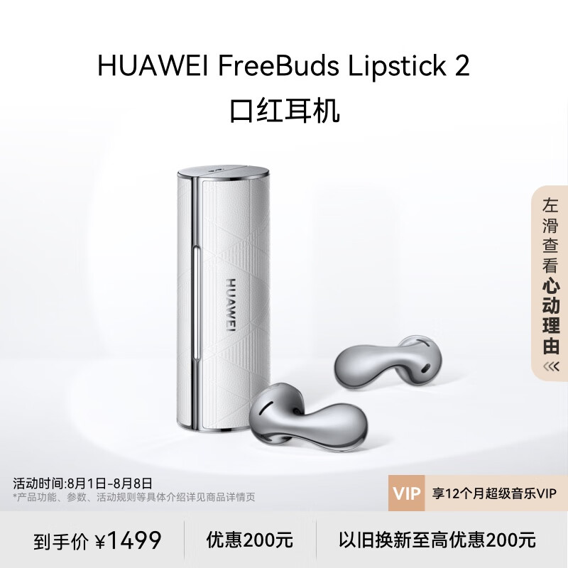 华为FreeBuds Lipstick 2 口红耳机 真无线蓝牙耳机 半入耳舒适佩戴/高清音质/超级快充 弦乐白价格:1499.00元!