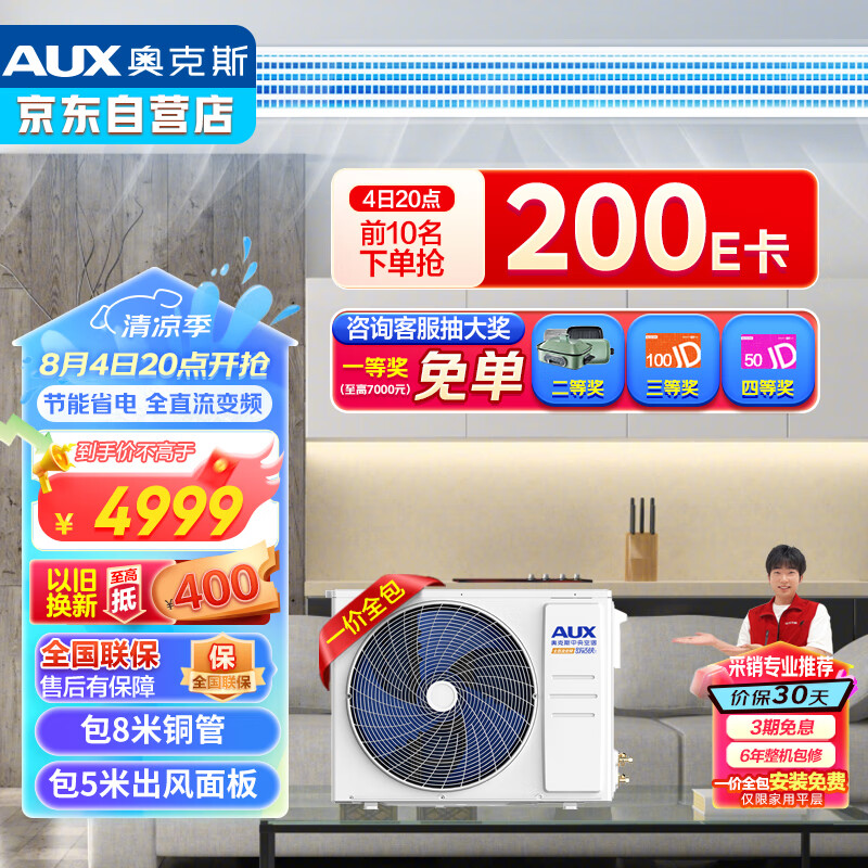 奥克斯(AUX)中央空调风管机一拖一2匹全直流变频 卡机客厅卧室嵌入式空调 舒适侠GR-51DW/BPR3DQ-SSX(B3)价格:4999.00元!