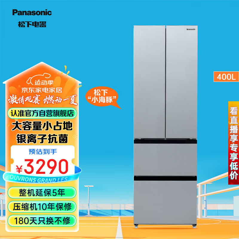 松下(Panasonic)【松下小海豚】400升 超薄可嵌入 四门法式冰箱 银离子 60cm宽占地小 变频风冷无霜多门电冰箱 NR-ED40WPA-S 冰河银价格:3290.00元!