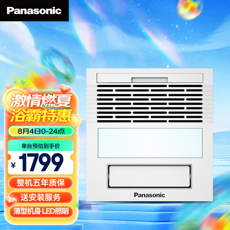 松下(Panasonic)风暖浴霸 浴霸暖风照明排气一体 智能控温通用吊顶式 FV-JDBNKL1价格:2299.00元!