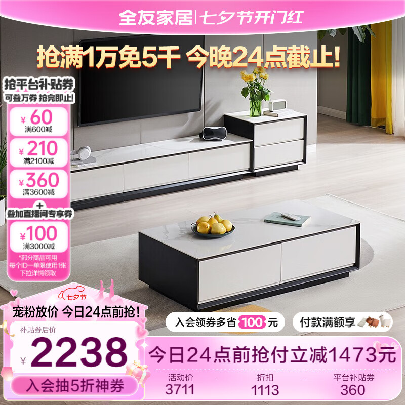 全友家居 茶几电视柜大小户型岩板茶台收纳附柜现代客厅家具DW1055价格:3711.43元!