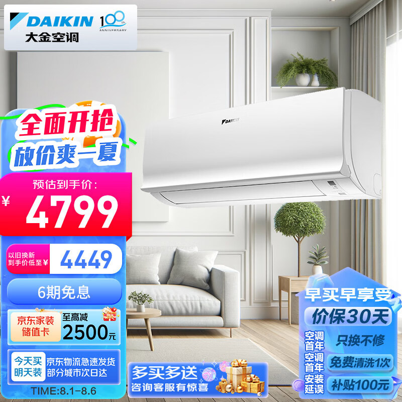 大金空调 10-17㎡适用 新二级能效 大1匹 变频 冷暖 家用 壁挂式 以旧换新 ATXS226WC-W价格:4799.00元!