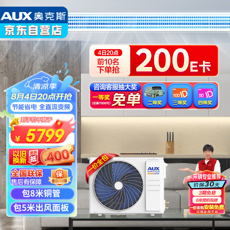 奥克斯(AUX)中央空调风管机一拖一3匹全直流变频 卡机客厅卧室嵌入式空调 舒适侠 GR-72DW/BPR3DQ-SSX(B3)价格:5799.00元!