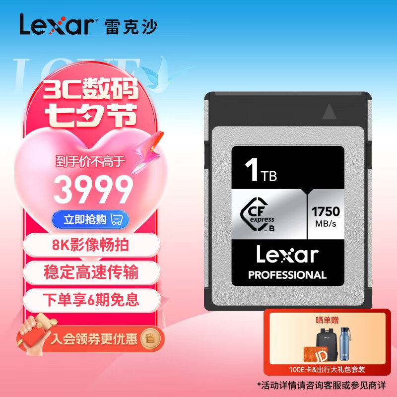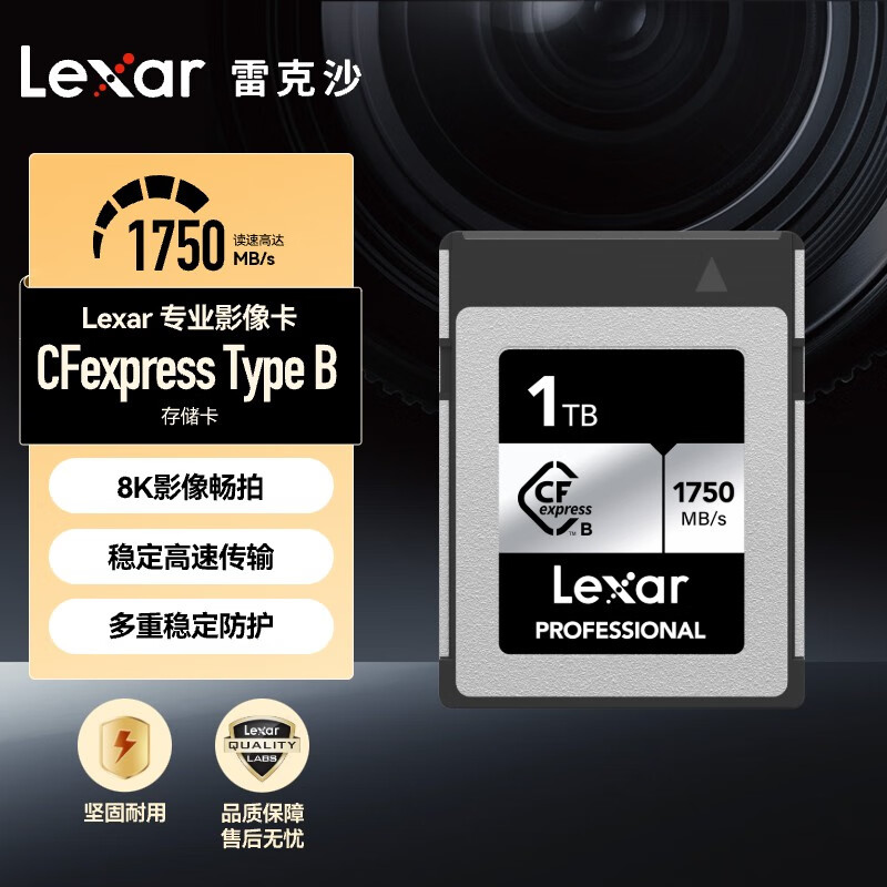 雷克沙(Lexar)1TB CFexpress Type B存储卡 读1750MB/s 富士佳能尼康适配 8K超清录制 cfe卡(SILVER) 价格:3999.00元!