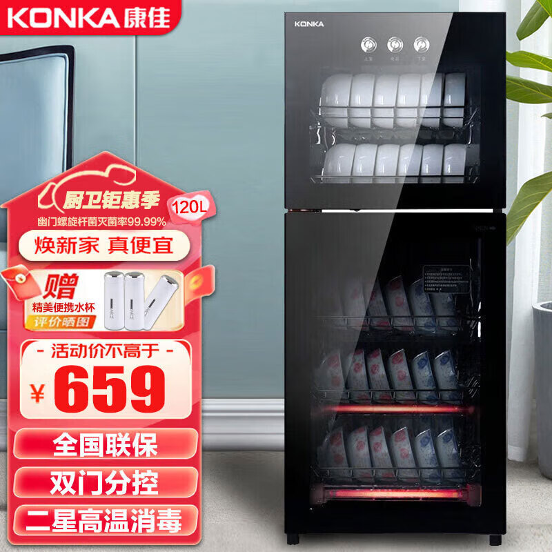 康佳(KONKA)商用消毒柜家用消毒碗柜立式臭氧杀菌红外线高温消毒大容量120L双门分控ZTP198K24价格:799.00元!