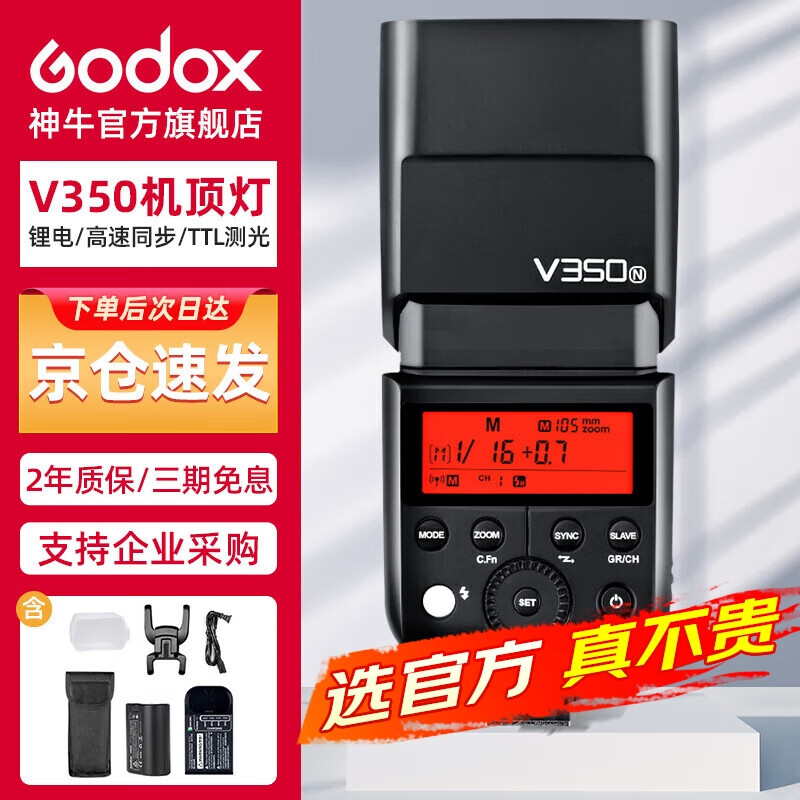 神牛(Godox)V350-N 尼康微单相机高速同步闪光灯外置TTL便携锂电池热靴机顶闪光灯 (尼康版)价格:788.00元!