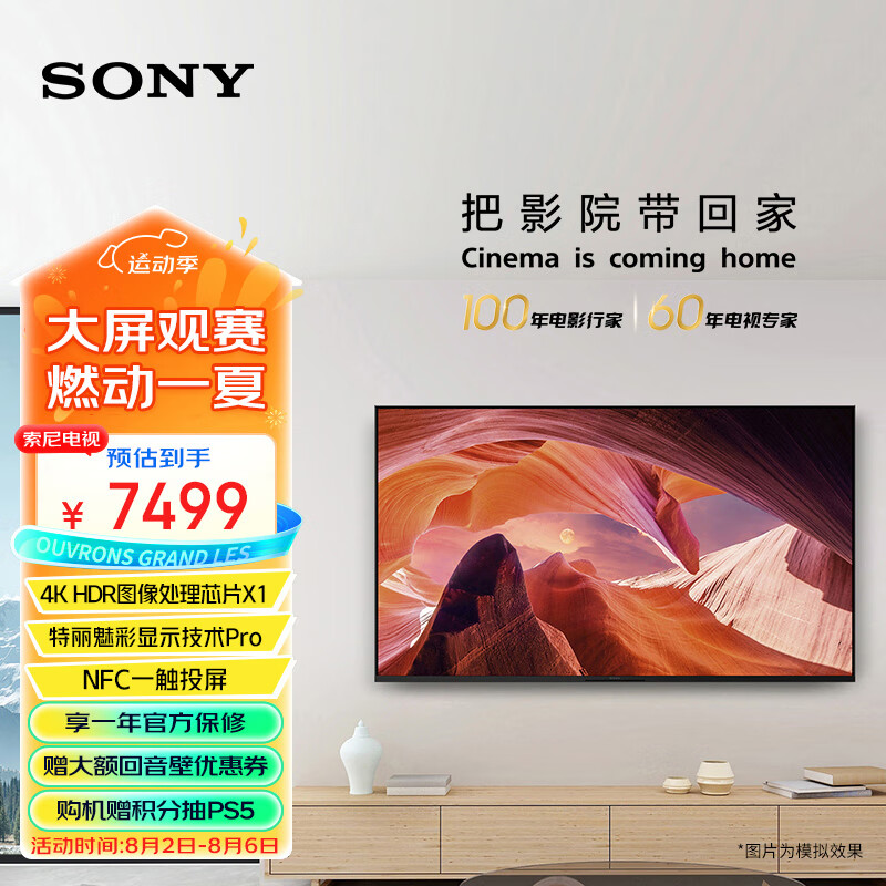 索尼(SONY)【官方直营】KD-75X80L 75英寸 屏 4K超高清HDR 安卓智能电视 X1芯片 特丽魅彩Pro 京配上门价格:7499.00元!