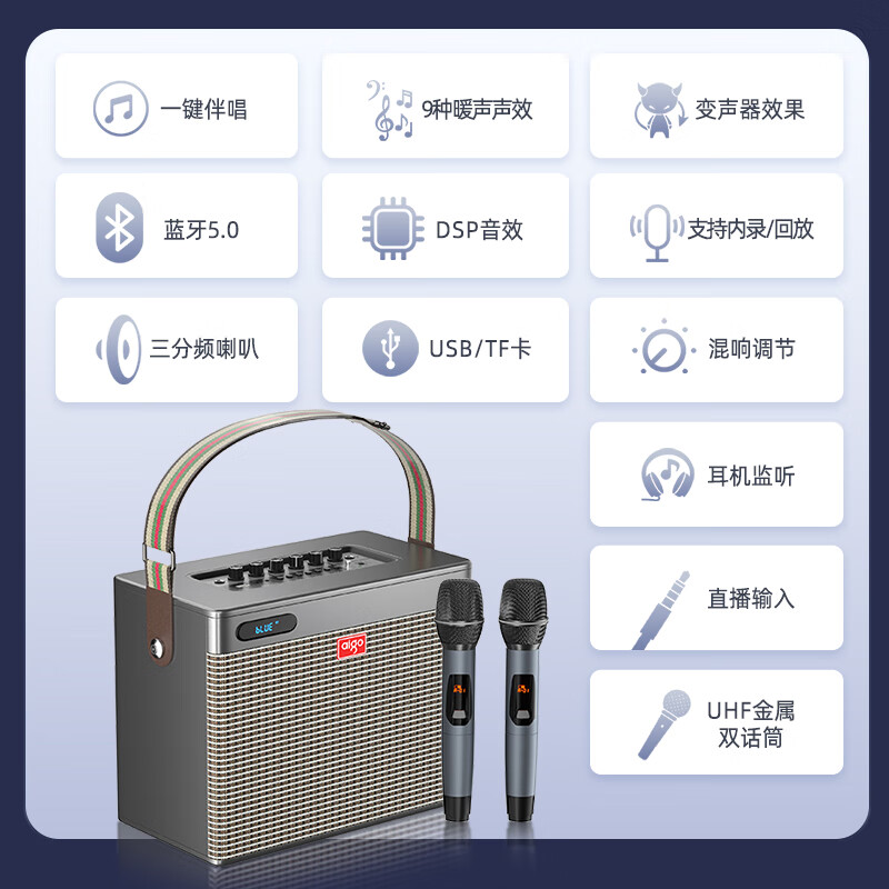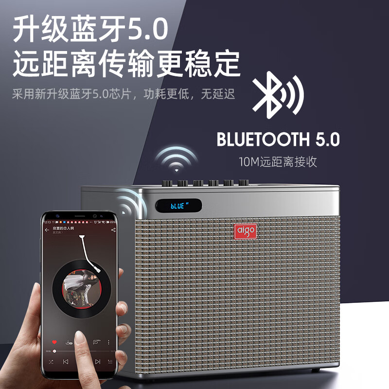 爱国者T165蓝牙音箱户外广场舞音响大功率直播声卡乐器K歌低音炮手提便携式家庭KTV 双话筒锖色价格:1199.00元!