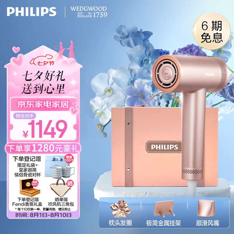 飞利浦(PHILIPS)7系Pro+鎏金筒礼盒装 3.6亿负离子 头皮柔护科技 家用静音负离子大功率不伤发 送礼七夕情人节礼物价格:1149.00元!
