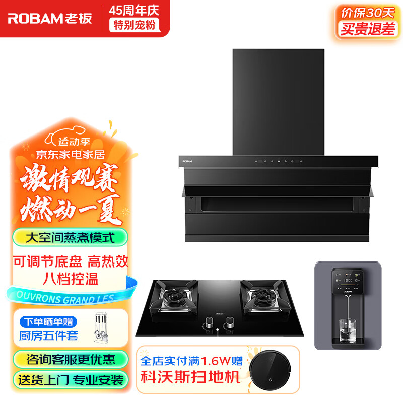 老板(Robam)小黑翼侧吸烟灶管线机三件套27A13-D1+57B2D+GX07价格:6298.00元!