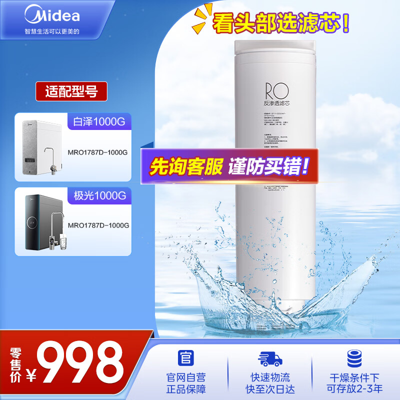 美的净水器滤芯—适用于MRO1787D-1000G 、MRO1787D-1000G、MRC1878B/1878B-1000G -Best系列- RO滤芯价格:998.00元!