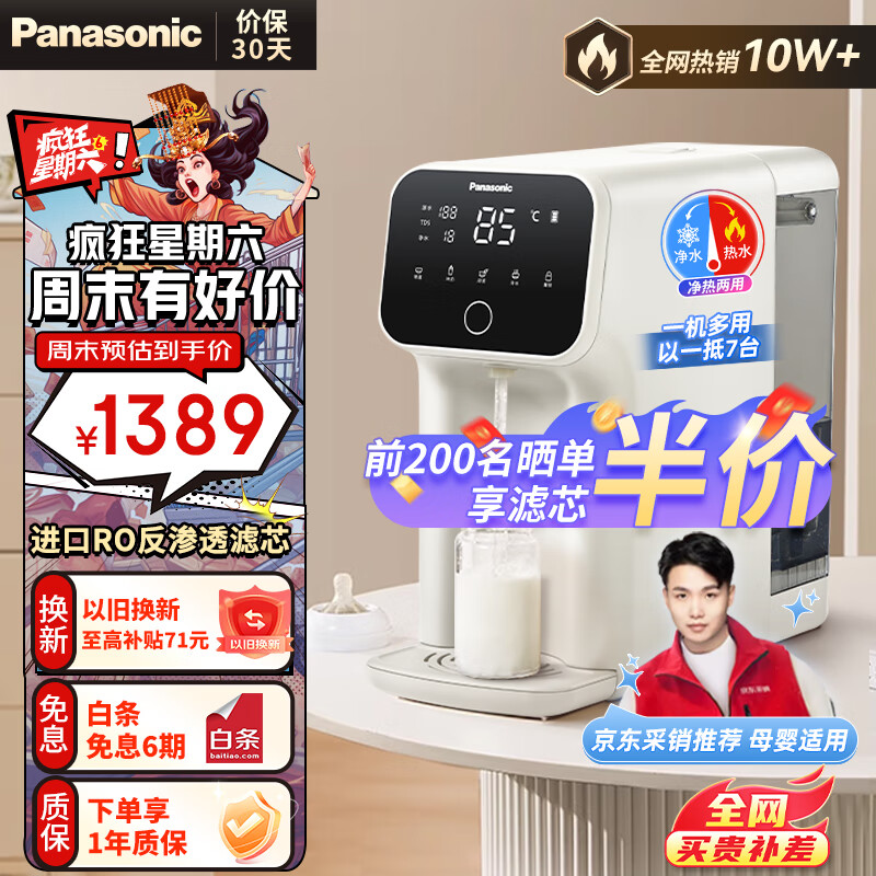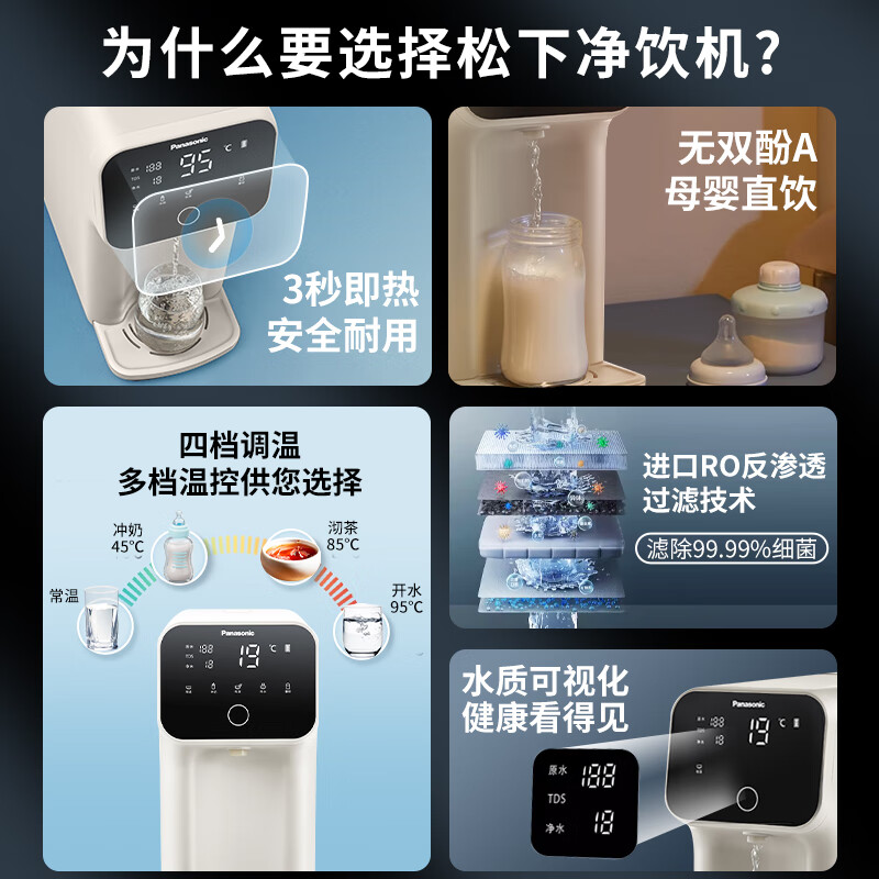 松下 Panasonic 加热净水器净饮一体机家用直饮机台式即热式RO反渗透净水机免安装饮水机AD59C价格:1399.00元!