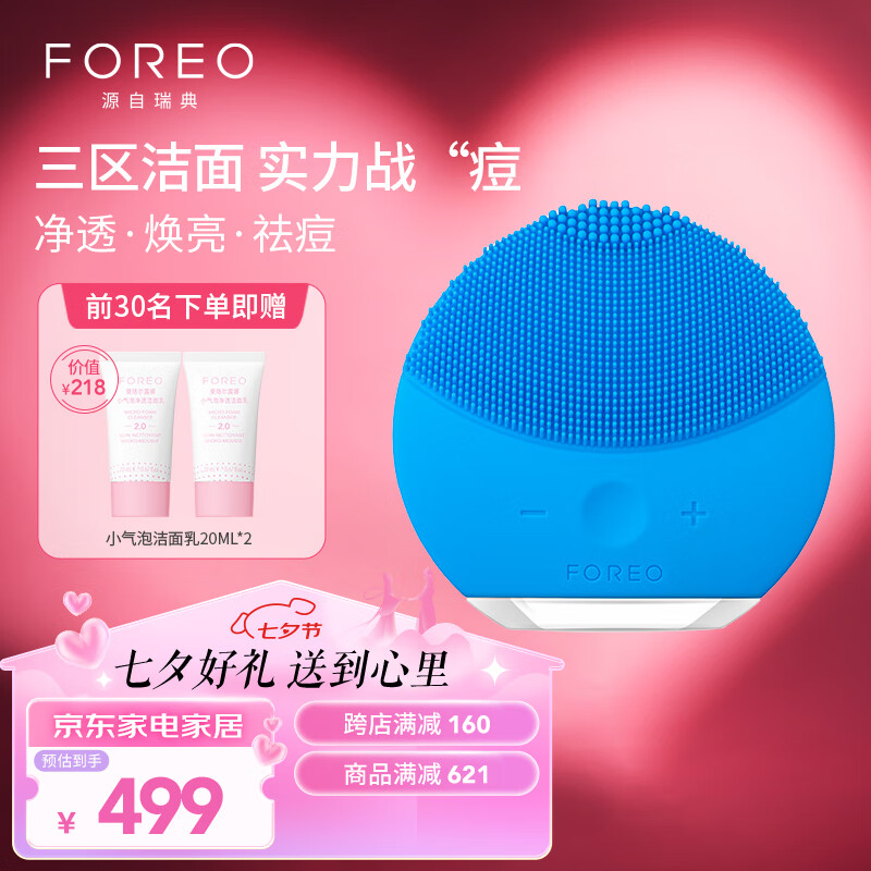 斐珞尔(FOREO)露娜洁面仪LUNAmini2净透洗脸仪电动深度清洁彩妆残留收缩毛孔洗脸神器 海洋蓝 充电款价格:1280.00元!