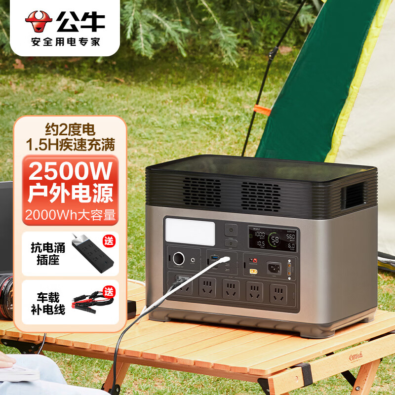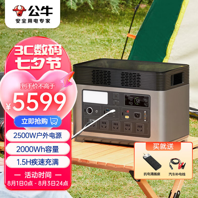 公牛户外快充移动电源2500W大功率 约1.5h疾速充满 房车储能220V移动电站大容量2000Wh大功率电站价格:5599.00元!