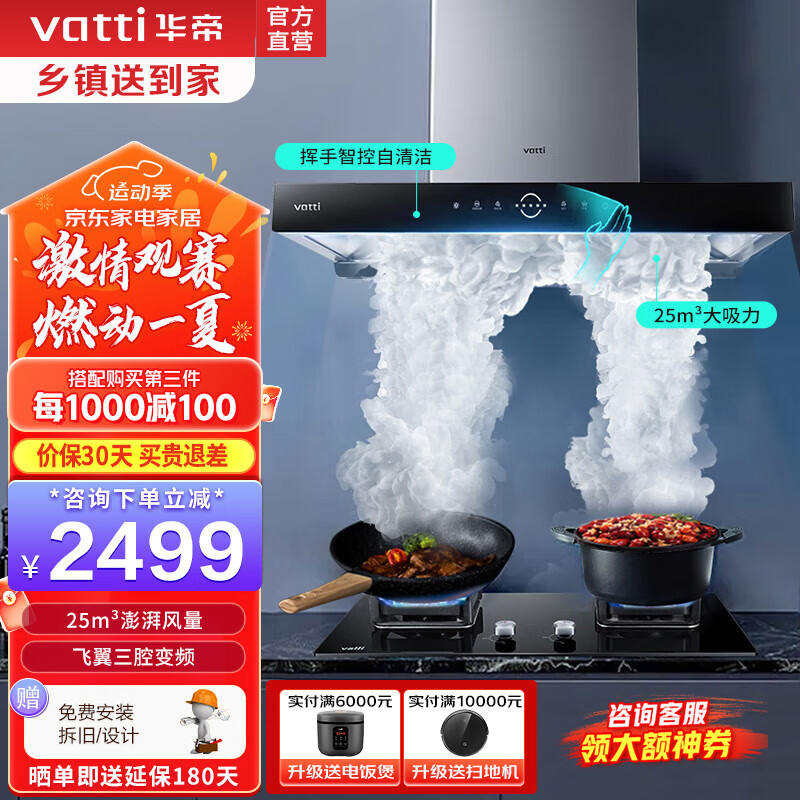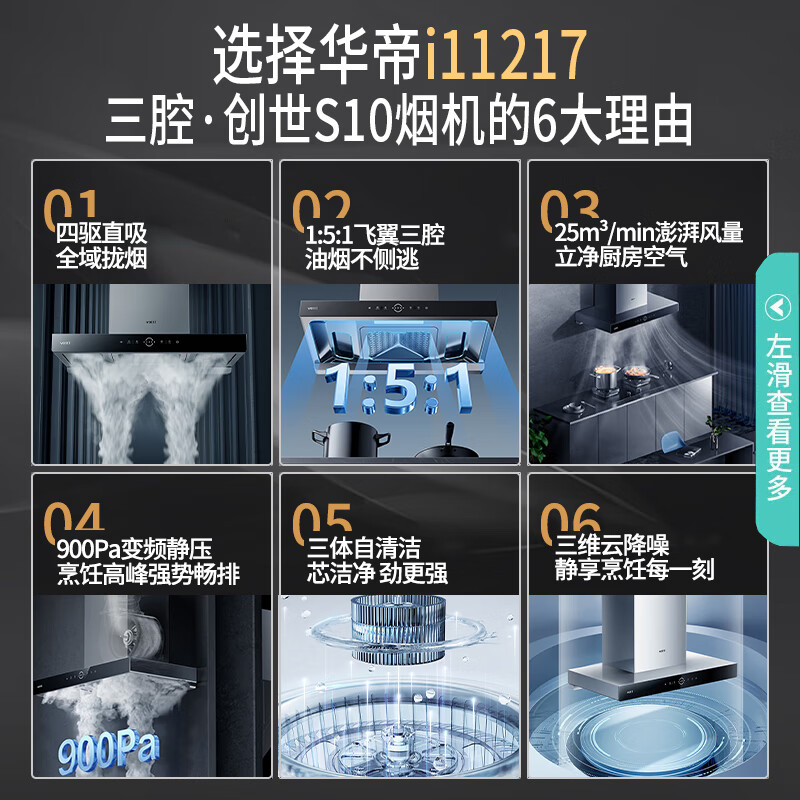 华帝(VATTI)欧式抽油烟机官方i11217耀世S10三腔家用变频油烟机25立方大风量900Pa静压自清洗挥手智控抽油烟烟 i11217 单烟机价格:2799.00元!