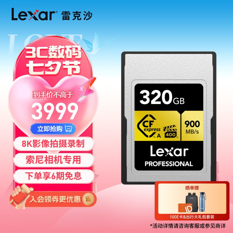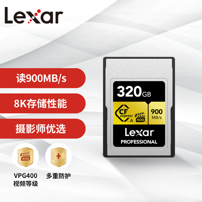 雷克沙(Lexar)320GB Cfexpress Type A存储卡 VPG400 8K录制 索尼相机专用cfa卡 读900MB/s(GOLD) 价格:3999.00元!