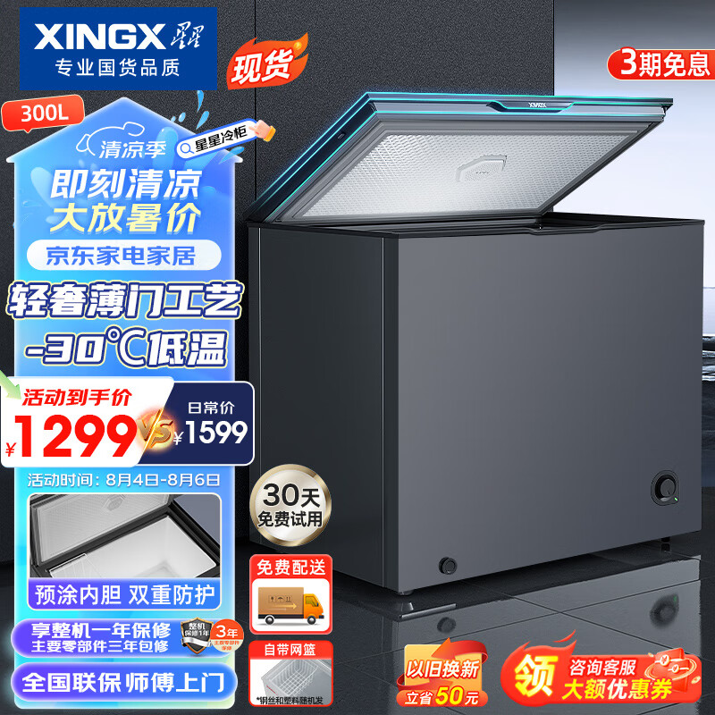 星星(XINGX)300升家用商用减霜净味薄门冰柜 冷藏冷冻转换冷柜 节能顶开冰箱 BD/BC-300KE价格:1199.00元!