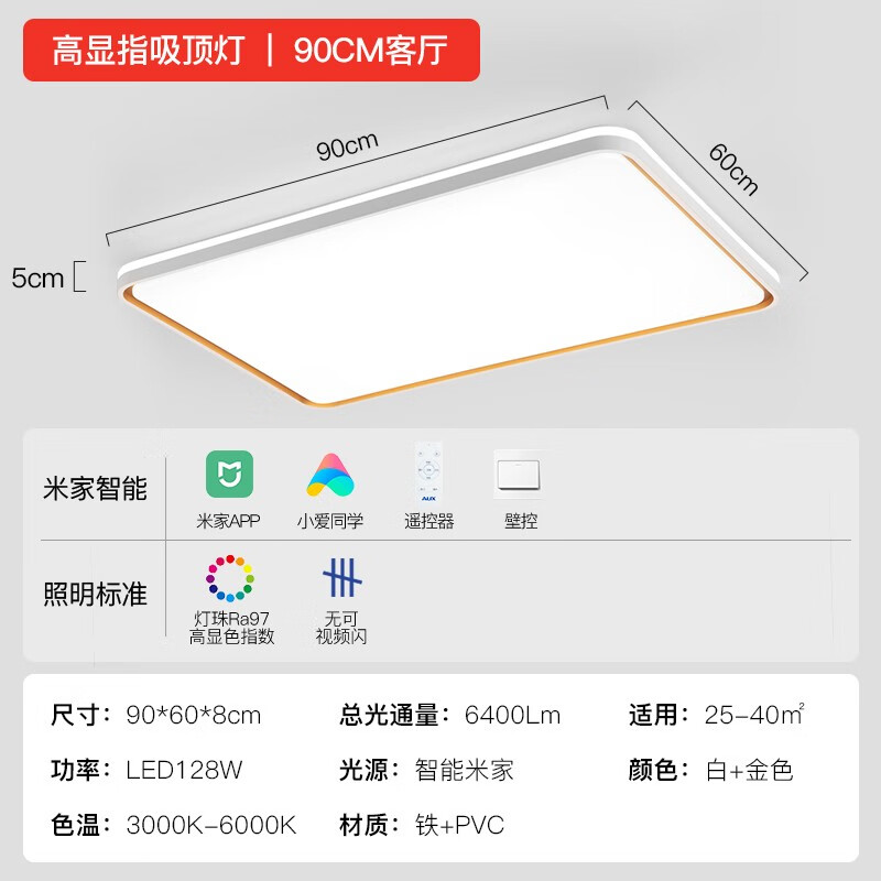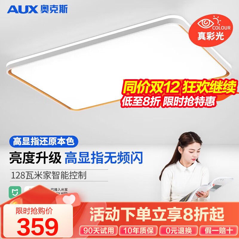 奥克斯(AUX)客厅灯卧室灯餐厅灯后现代创意灯具 led吸顶灯升级智能灯饰 米家智控/97高显指128瓦/30㎡价格:399.00元!