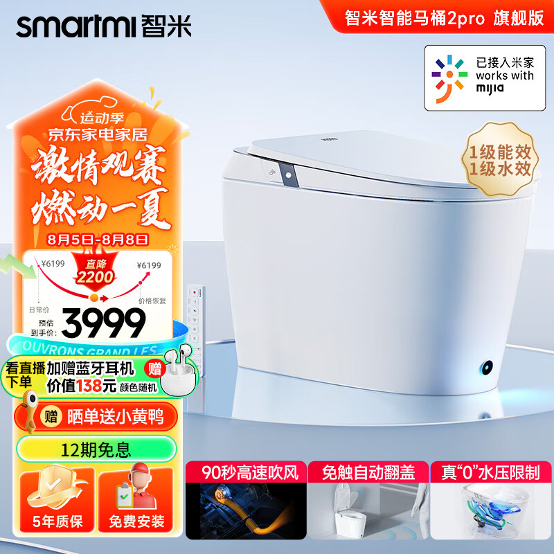 智米(SMARTMI)智能马桶泡沫盾无水压自动翻盖智能坐便器米家2PRO价格:4509.00元!