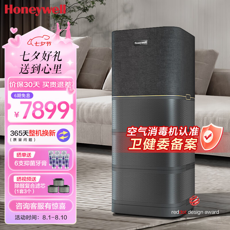霍尼韦尔(Honeywell)空气净化器除甲醛除异味细菌 卫健委备案消毒机h-max 大空间速净KJ1000F-P22B价格:7899.00元!