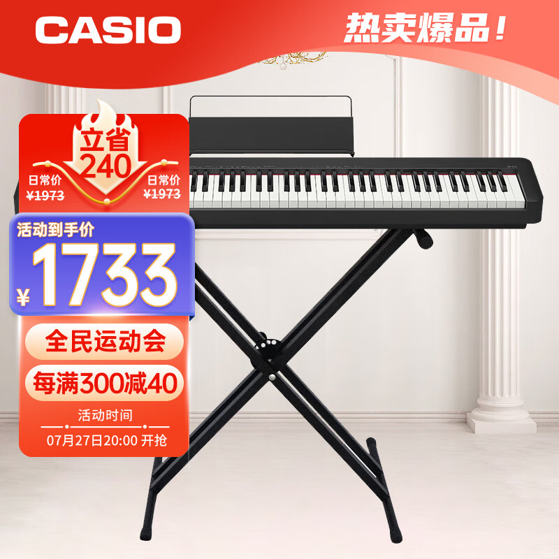 卡西欧(CASIO)电钢琴CDPS110黑色88键重锤数码电子钢琴时尚轻薄便携款+X架款价格:1973.00元!