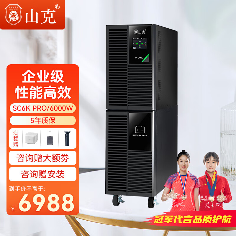 山克SC6K PRO 在线式UPS不间断电源6KVA/6KW内置电池服务器机房电脑备用电源价格:6988.00元!