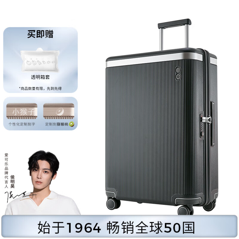 爱可乐(Echolac)明星同款大容量行李箱出国旅行箱王朝防刮拉杆箱深灰色20吋PC142价格:1179.00元!