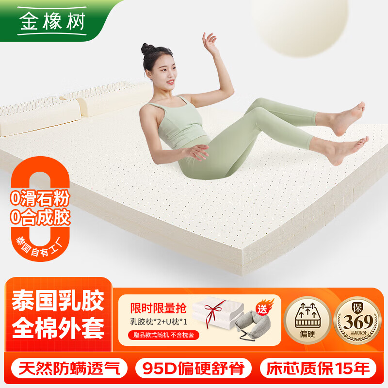 金橡树床垫 泰国进口天然乳胶床垫加厚榻榻米橡胶双人床垫加硬云梦95D价格:2018.00元!