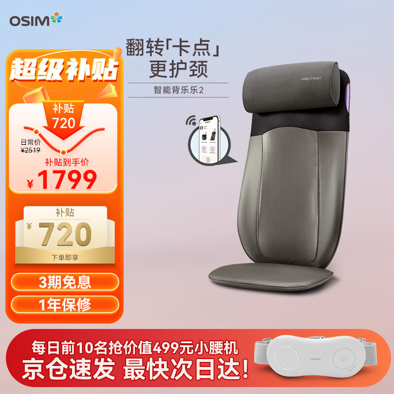 傲胜(OSIM)升级按摩坐垫 按摩椅靠垫颈部背部腰部按摩背垫颈椎按摩器 智能款OS-290S 深灰色 七夕情人节礼物价格:2039.00元!
