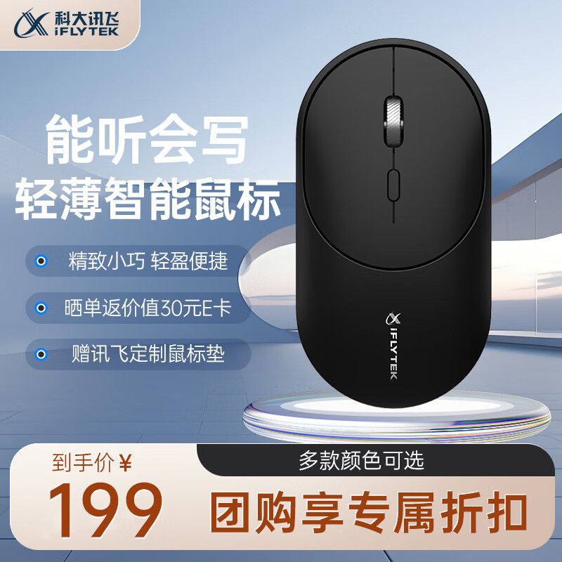 科大讯飞智能鼠标LiteM320 办公鼠标 无线外设 轻薄便携 多彩小巧 轻音按键 智能语音输入打字翻译 石墨黑价格:199.00元!