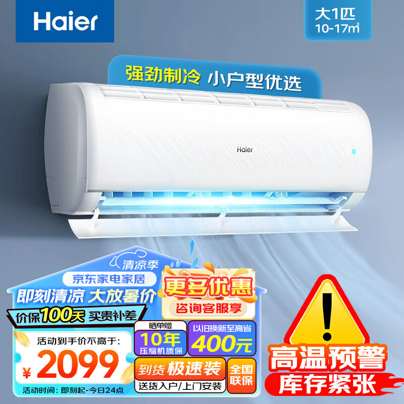 海尔(Haier)净畅空调大1匹新一级能效变频挂机 冷暖家用卧室壁挂式空调自清洁 防直吹26KPB81U1(KBB升级款)价格:2099.00元!