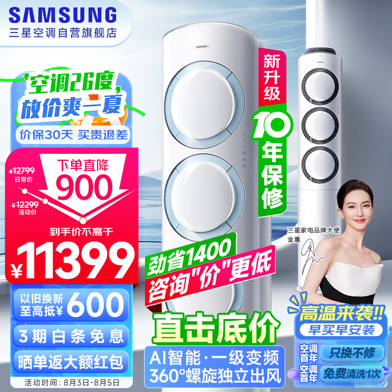 三星空调2匹新一级能效AI智能语音柜机立式全直流变频WIFI冷暖空调 26-36㎡适用以旧换新KFR-50L/EMH1价格:11399.00元!