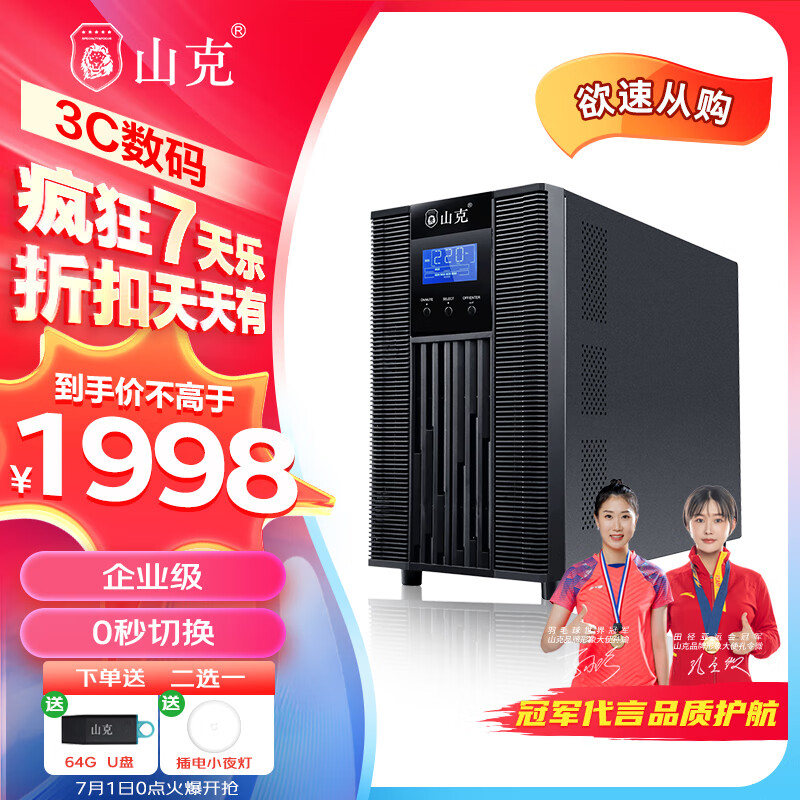 山克SC3K在线式ups不间断电源3000VA/2400W企业办公电脑服务器停电稳压应急备用ups电源价格:1998.00元!